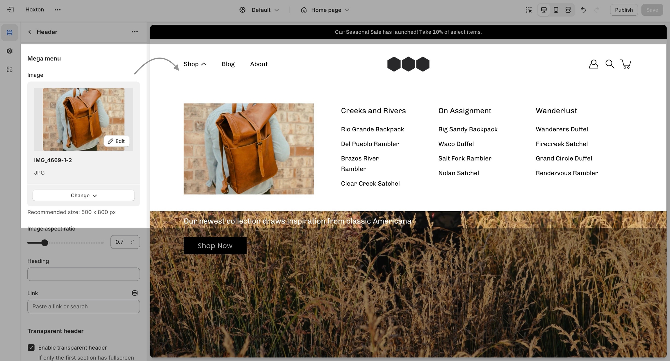 Setting up a mega menu for your header