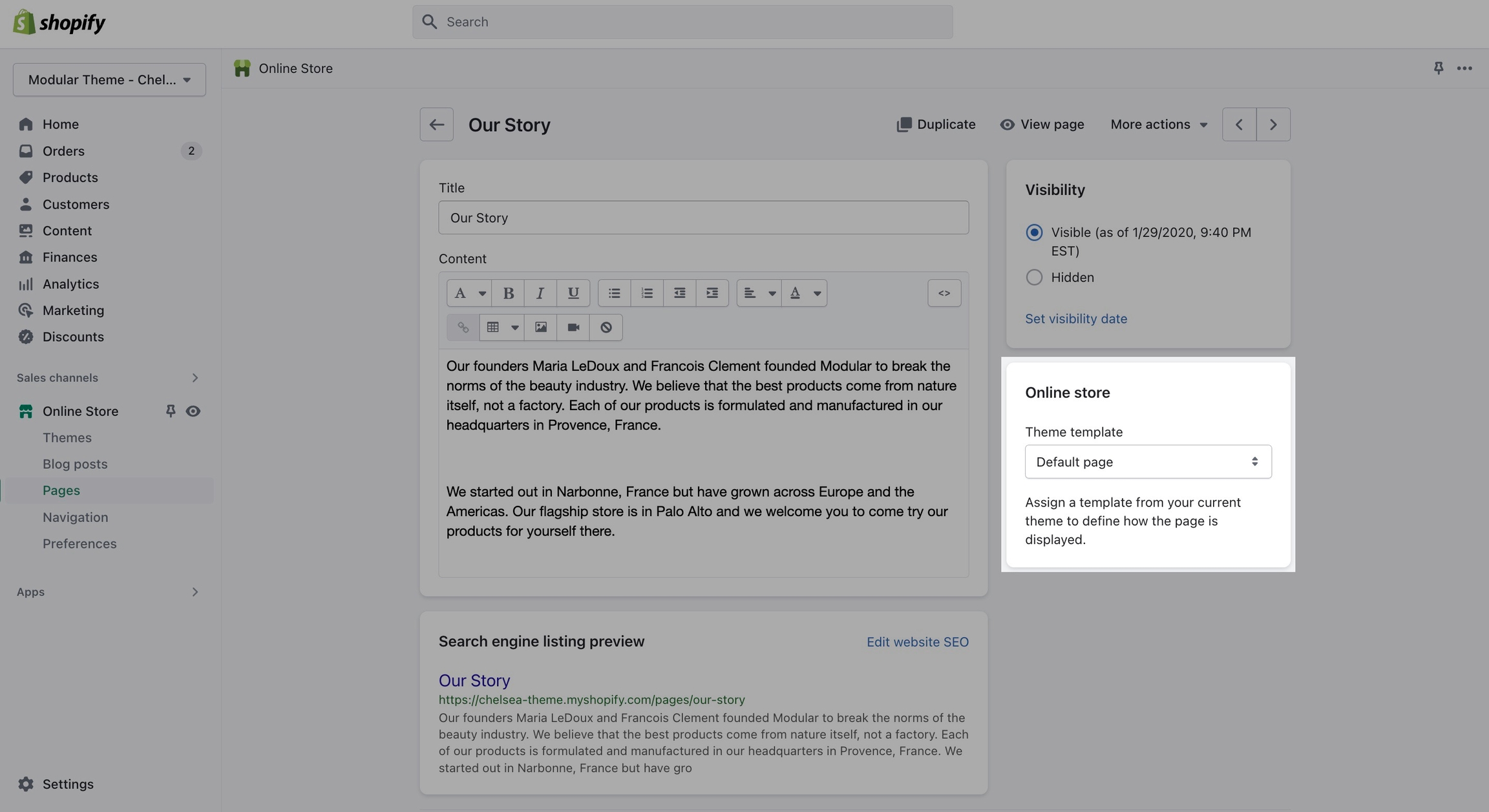 Using the Theme Editor, you can customize the template that's been assigned to your page: