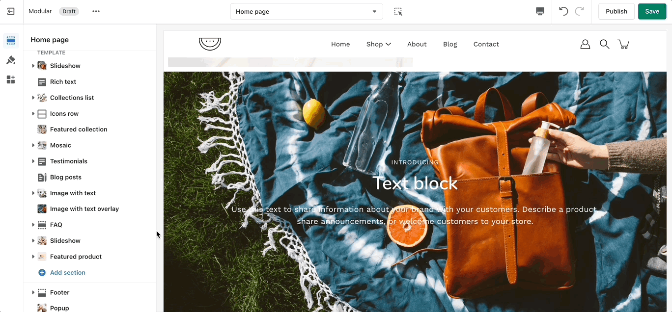 <figure><img src="https://content.gitbook.com/content/cslEBmhnE7vAvh3vPA8e/blobs/eUV5TrzC2D4dVGylyR9V/image-with-text-overlay-section.gif" alt=""><figcaption><p>Set the image, section size, and content positioning. Control the overlay color and overlay opacity.</p></figcaption></figure>