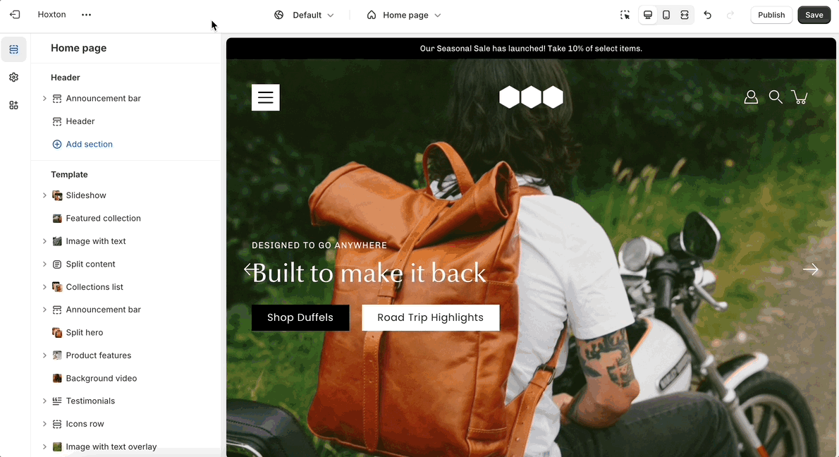'Announcement bar' is a versatile tool that enables you to share vital messages with your website's visitors efficiently. Use it to advertise sales, new product launches, or free shipping offers.